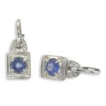 Złote kolczyki z szafirami 2x 0.90CT oraz brylantami 0.10ct osadzonymi w 14 karatowym białym złocie.